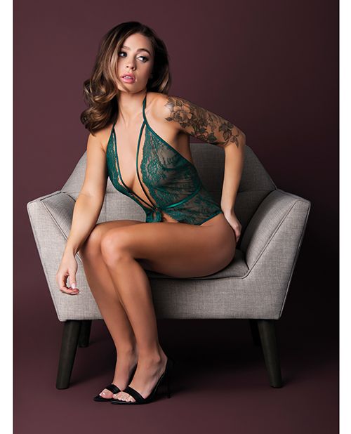 Indulge in sultry sophistication with the Evermore Lace Plunge Teddy—an emerald green vision of elegance and seduction. With scalloped lace cut-outs, a plunging neckline, and a daring open-back design, this piece is made to mesmerize. Available in S/M, L/XL, and Queen for a flawless fit.