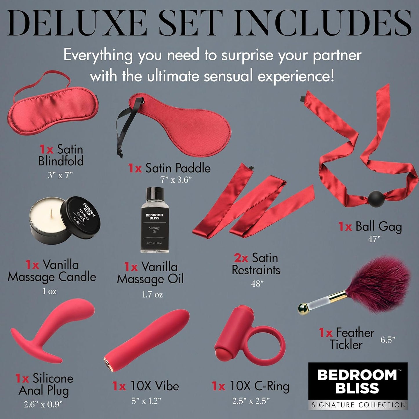 - A curated collection of restraints and massage essentials.