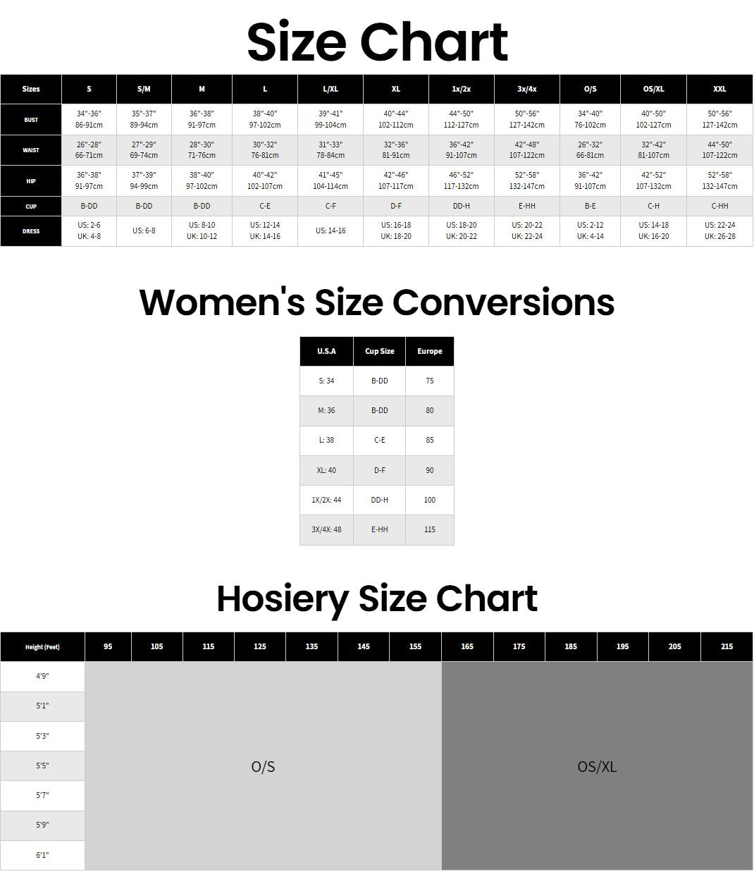 - One Size: Bust 30-36 in. | Cup A-C | Waist 24-29 in. | Hip 34-39 in. | Weight 110-165 lbs | Dress Size 0-10