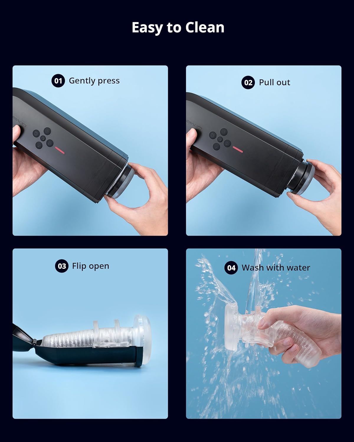 - Clean the detachable sleeve with warm water and toy-safe cleaner after each use.
