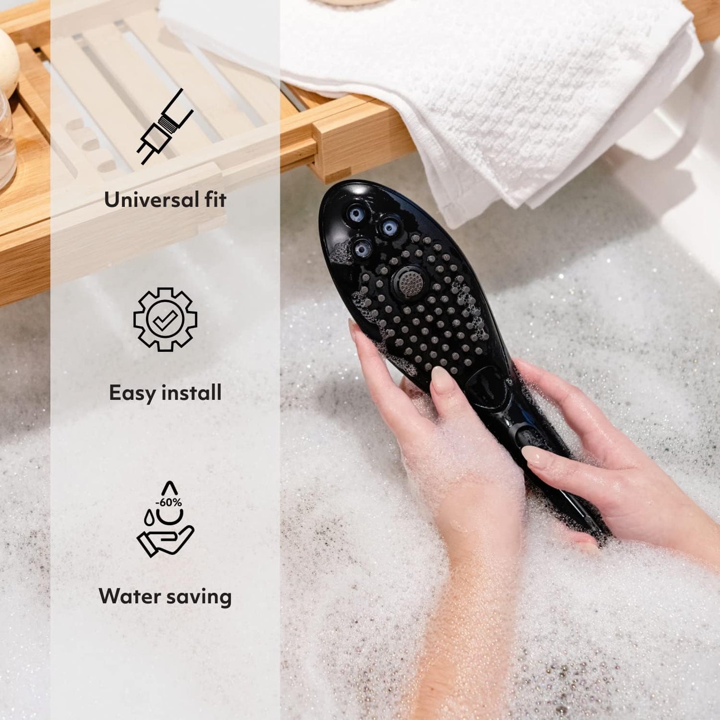 - Uses 60% less water than conventional shower heads while maintaining optimal performance.